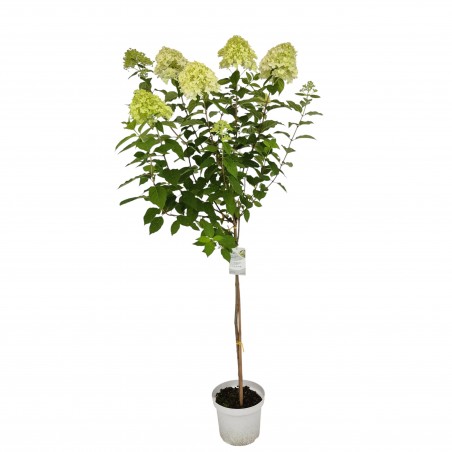 Hortensja bukietowa Limelight na pniu wyróżnia się niezawodnym kwitnieniem, olbrzymimi wiechowatymi kwiatostanami oraz bujnym wzrostem. Zaletą jest zwłaszcza to, że kwiaty zawiązują się na pędach jednorocznych, a więc nie są narażone na przemarzanie w okresie zimy. Jedna z najwartościowszych odmian hortensji, w pełni odporna na mrozy. Roślina wyprowadzona na pniu na wysokości 75-80cm