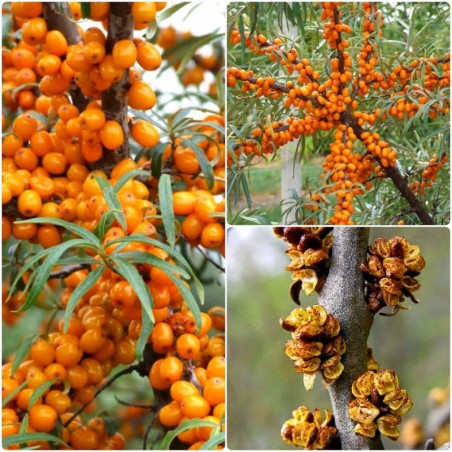 Owoce: Szczegółowe informacje o owocach można znaleźć na stronie poszczególnych produktów. Botaniczeskaja - ceniona odmiana o dużych, soczystych owocach, bogatych w witaminę C i karotenoidy. Moskwiczka - odmiana o wysokiej plenności, dająca aromatyczne, pomarańczowe owoce doskonałe na soki i przetwory. Hikul (męski) – niezawodny zapylacz, nie owocuje, ale gwarantuje pełne zapylenie krzewów żeńskich.